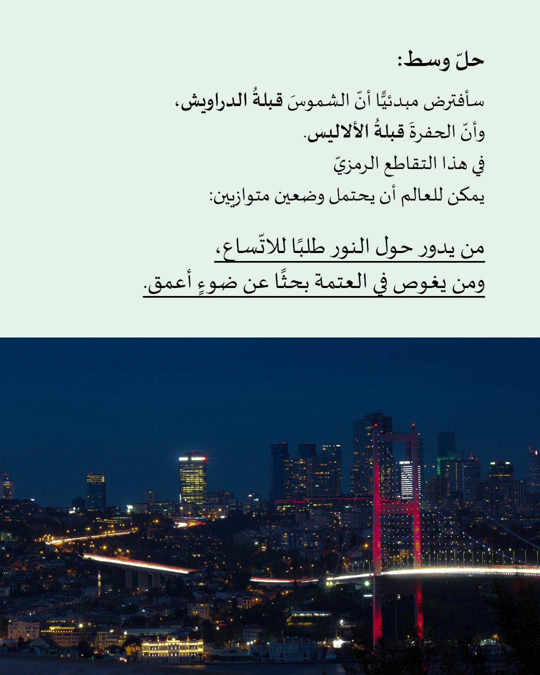 I closed my eyes for a moment. Above the Bosphorus, I saw threads of light walking as if searching for an absent body. The city breathed slowly, and the sea returned images I had not yet seen. The threads moved without haste, like someone reviewing notes in a book they have not yet understood.