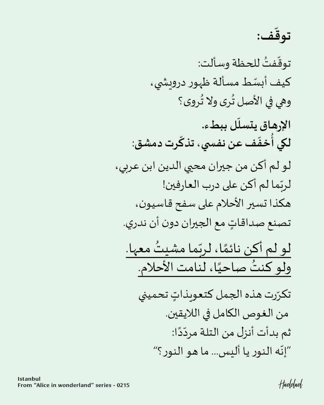 I will assume, for now, that the sun is the qibla of the dervishes, and that the hole is the qibla of the Alices.